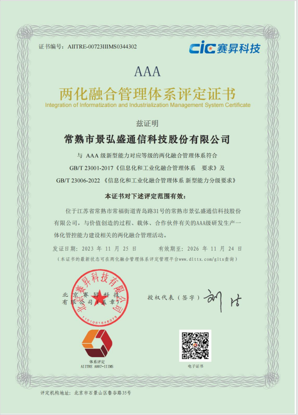 常熟市景弘盛通信科技股份有限公司成立于2006年8月,多年積累沉淀,跨越發(fā)展,目前公司擁有員工近450人,各項(xiàng)專利數(shù)十項(xiàng),注冊資本1.229億人民幣。公司目前擁有員工近450人,各項(xiàng)專利數(shù)十項(xiàng),注冊資本1.229億人民幣,成為Apple、Intel、HP、Dell、Google、聯(lián)想、華為、中興、愛立信、Philips、阿特斯、特斯拉、上汽、SAIC Motor,福汽、北汽、菲尼克斯、安費(fèi)諾、泰科等世界知名企業(yè)的重要供應(yīng)商。公司在新工廠籌建企業(yè)內(nèi)部大數(shù)據(jù)中心,建設(shè)基于工業(yè)物聯(lián)網(wǎng)的“智能制造”項(xiàng)目,利用大數(shù)據(jù)管理實(shí)現(xiàn)智能化管理的高科技公司,并加強(qiáng)人才的培養(yǎng)和招聘,引進(jìn)了國際尖端人才,以及面向未來...更多>>